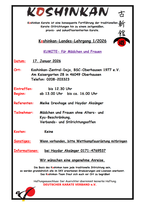 24.01.: Koshinkan Kata und Kumite